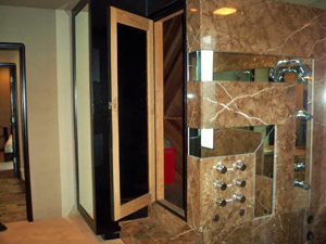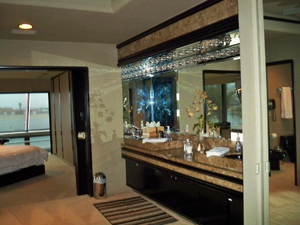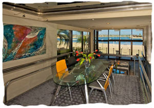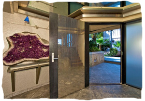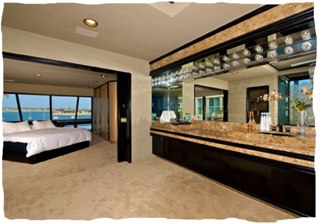 Five Star experience on the sand! Amazing views from the entire house, modern furnishings & contemporary art, very clean, plasma TV's, Chef's gourmet kitchen with sub-zero appliances, garage, waterfalls, roof top deck with outdoor kitchen & jacuzzi. Master bedroom boasting fantastic Bay Views with a Double jacuzzi Shower, Sauna in master bath, and Huge Plasma Screen. The front deck has retractable sliding glass doors which allow a completely open air, in-door/out-door experience. Glass windows have automated shades for privacy and black-out curtains. Two car garage with additional parking on El Carmel Point. * A very unique feature of the home which is not replicated in Mission Beach is its subterranean grotto with indoor jacuzzi and home theater. *The use of the grotto is not included in the base rental fee and is available for an additional fee to be negotiated at the time of booking. |
