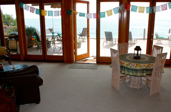 Beautiful Oceanfront home, vacation rental overlooking the beach and waves. Patio overlooking the ocean! 3-bedroom duplex home available for your resort style living, with the ocean in front of you. This one has 2 King beds, and one bedroom with a queen! 2.5 bathrooms. Oceanfront, 6 houses south of Beacon's Beach access. Two car parking in drive, fireplace. Fantastic ocean views from living room, master king bedroom, dining and kitchen! A fireplace in the living room. Close to the Historic Pacific Coast Highway, on the oceanfront street of Neptune in Encinitas, close to the white sandy beaches of Moonlight State Beach, with permanent lifeguard headquarters, tennis court, modern tot lot, concession stand, fire rings, showers and public facilities. Moonlight Beach is the focal point of all summer activities in the city of Encinitas. This property is fully equipped, with many extras. The living room faces the sunset ocean views. The patio has a dining table seating up to 8, is just outside; the indoor dining table. A Barbeque on the deck too. Comfortable seating arrangement with cable and flat panel TV and fireplace. note: Vacation rental properties are not appropriate for events or weddings A great place to hang for surfing, enjoying the beach, your own patio, the breezes all summer and year-round! Enjoy your afternoon glass of wine relaxing and watching the great sunsets! Less than 1/2 a block down to the beach! Take a walk to downtown Encinitas,