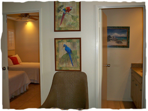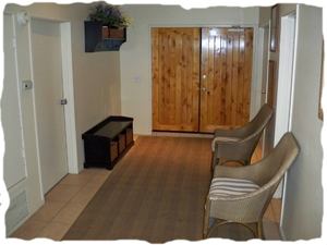 entry door exiting out of the condo, bedroom left and